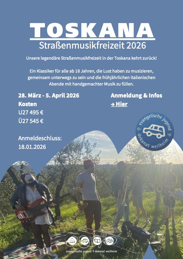 Hier erfahren Sie mehr über die vielfältigen Angebote der Evangelischen Jugend im Dekant Weilheim. Wir bieten jungen Menschen einen Raum für Gemeinschaft, Glauben und engagierte Mitgestaltung. Mit unseren Aktionen und Projekten möchten wir Sie inspirieren, unterstützen und begleiten. Schauen Sie sich um und entdecken Sie unsere unterschiedlichen Angebote.